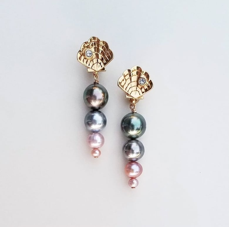 Vintage Shell Earrings with Ombre Pearl drop$525.00 -