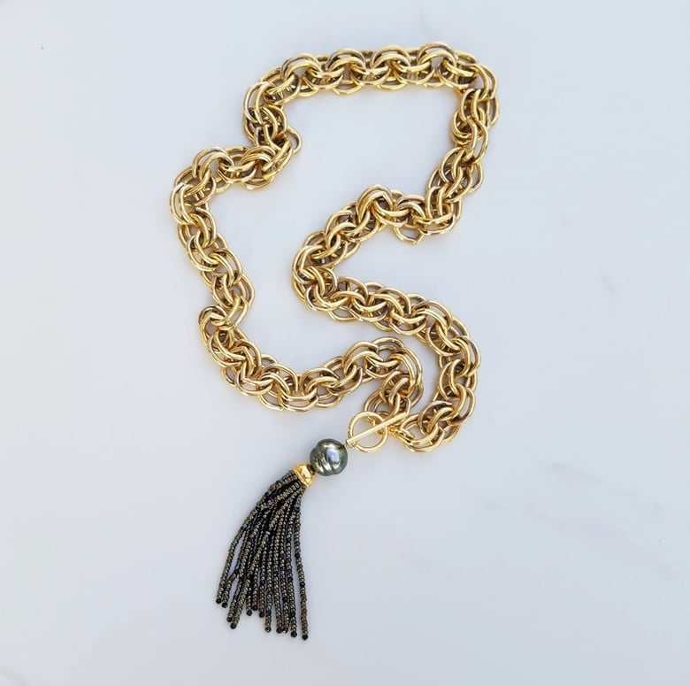Vintage Chunky Necklace Tahitian Pearl Tassel$600.00 -