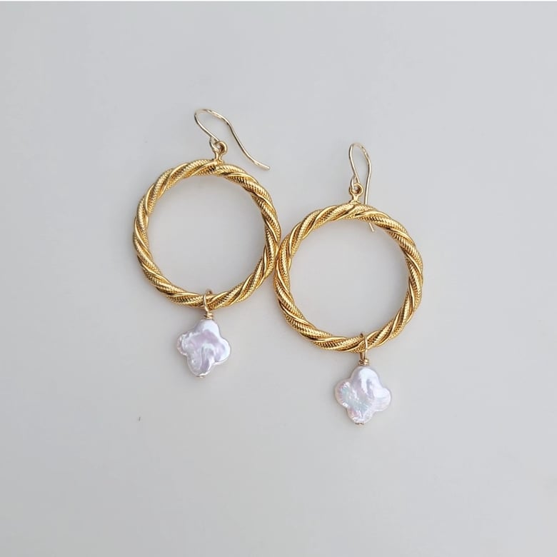 Vintage Hoop Clover Pearl Earrings$215.00