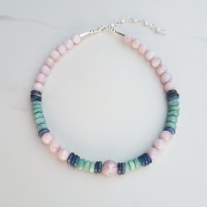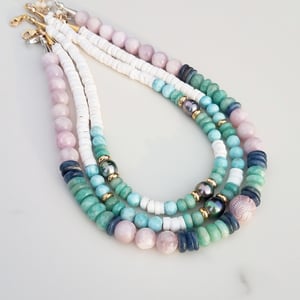 Carved Pearl, Amazonite, Kunzite, & Kyanite Necklace