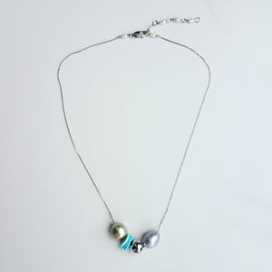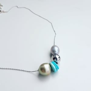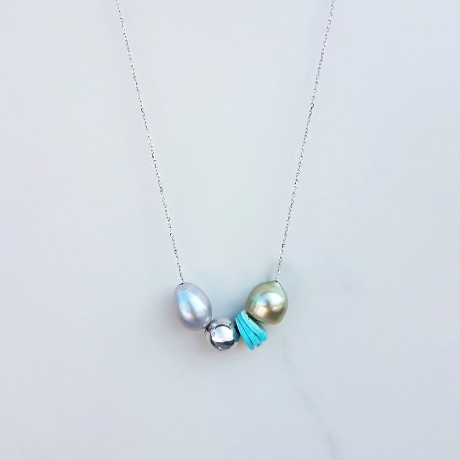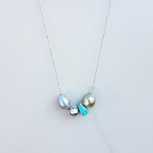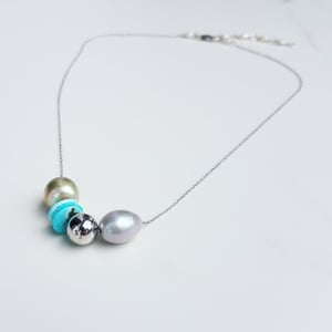 Multi Pearl, Turquoise, & Diamond White Gold Necklace