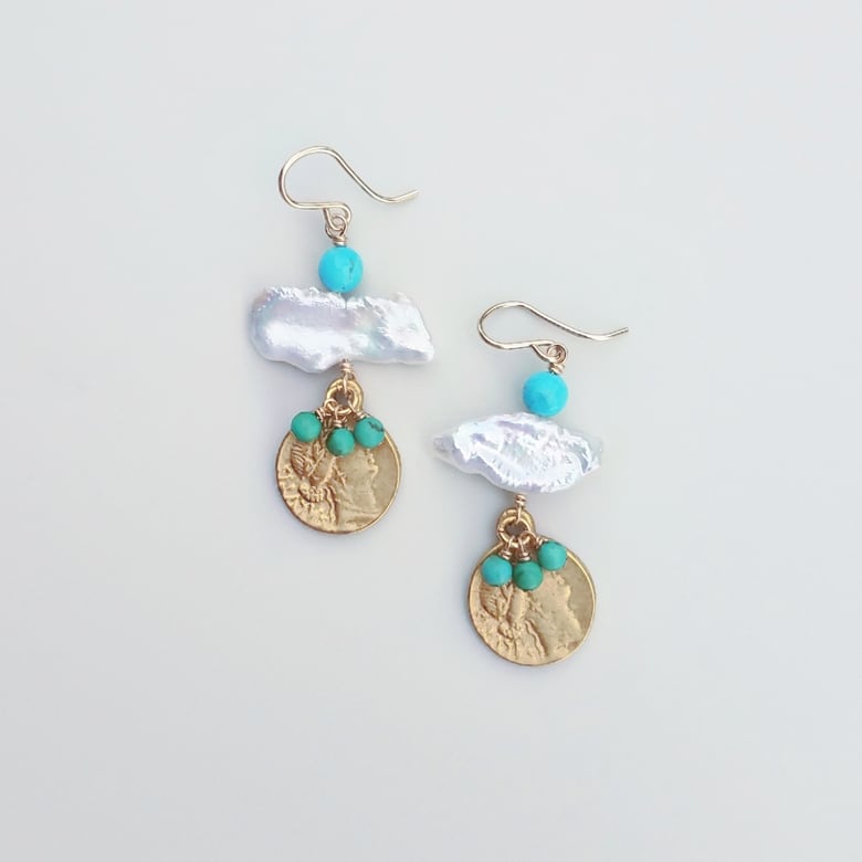 Turquoise, Pearl, & Coin Earrings$175.00 / Sold Out -