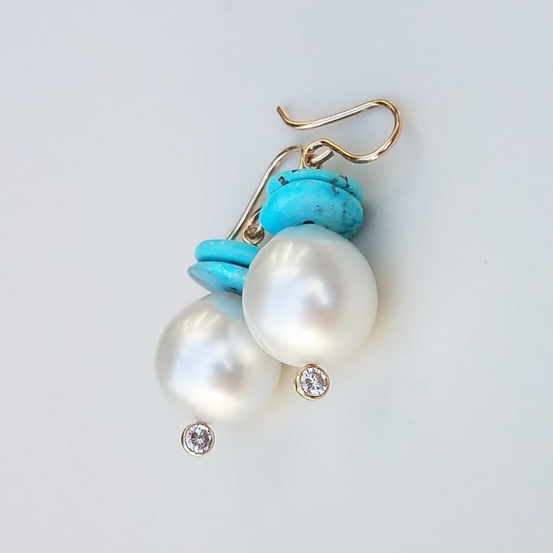South Sea Pearls with Turquoise disc Earrings$675.00 -