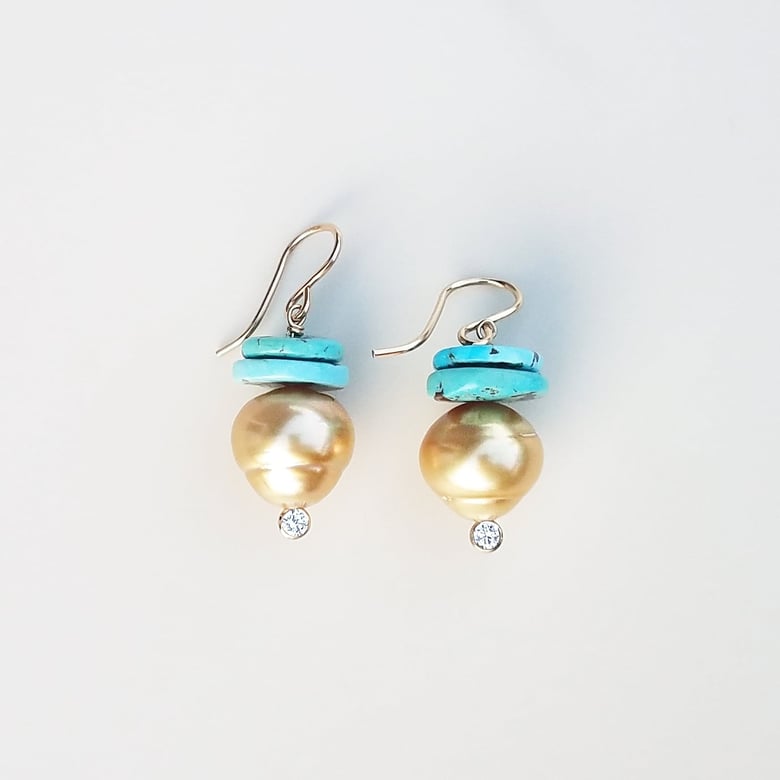 Gold South Sea Pearls & Turquoise Earrings$499.00 / Sold Out -