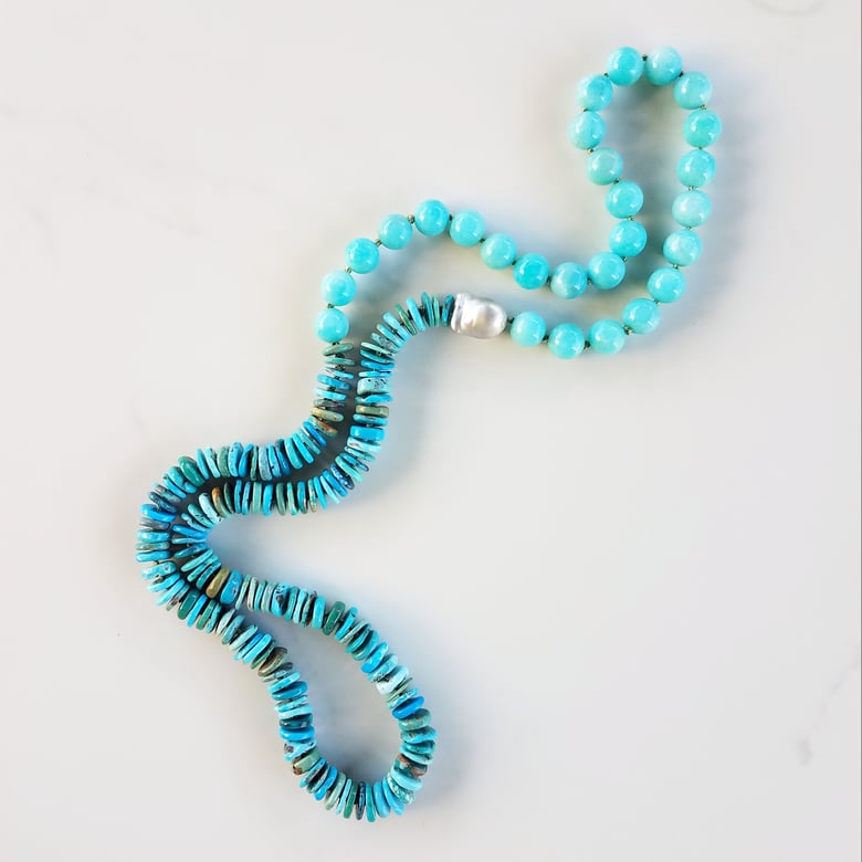Amazonite, Turquoise, & Silver Pearl Baby Helix Necklace$799.00 / Sold Out -