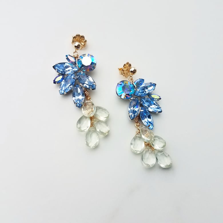 Blue Vintage Rhinestone Earrings with Prehnite$245.00 / Sold Out -
