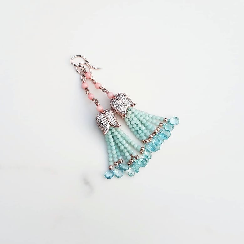 Coral, Amazonite, Aquamarine Mini Tassel Earrings$385.00 / Sold Out -