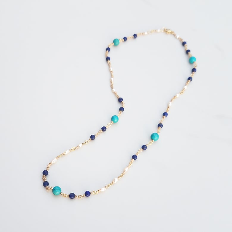 Turquoise, Lapis, & Pearl Necklace$195.00 / Sold Out -