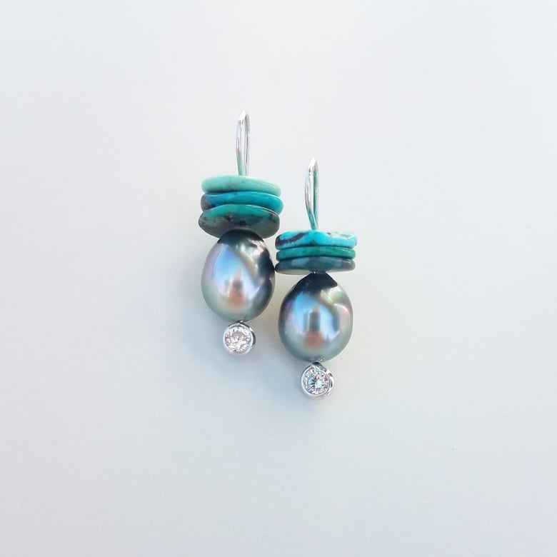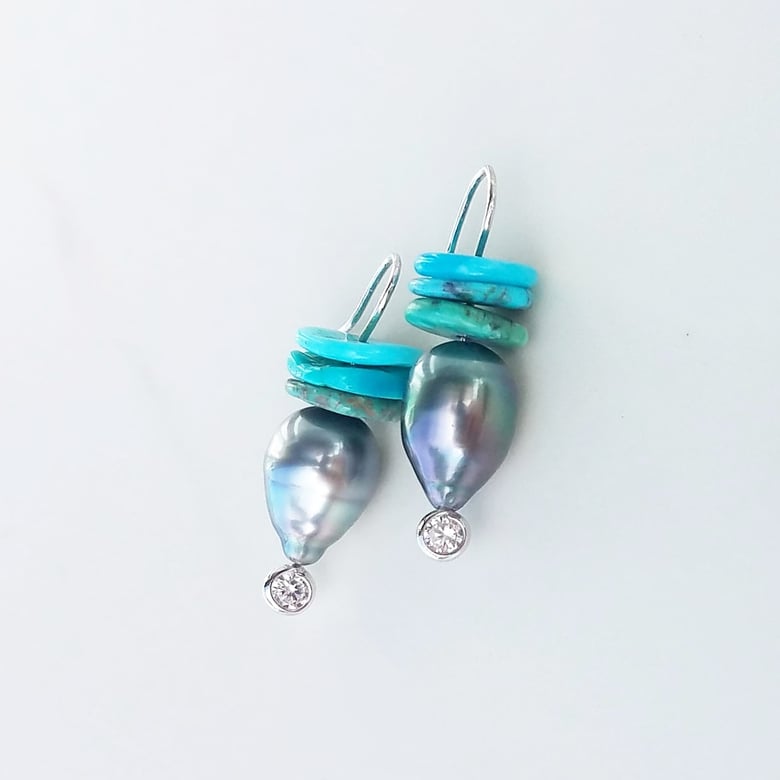 Tahitian Pearl Drops & Turquoise Disc Earrings$585.00 / Sold Out -