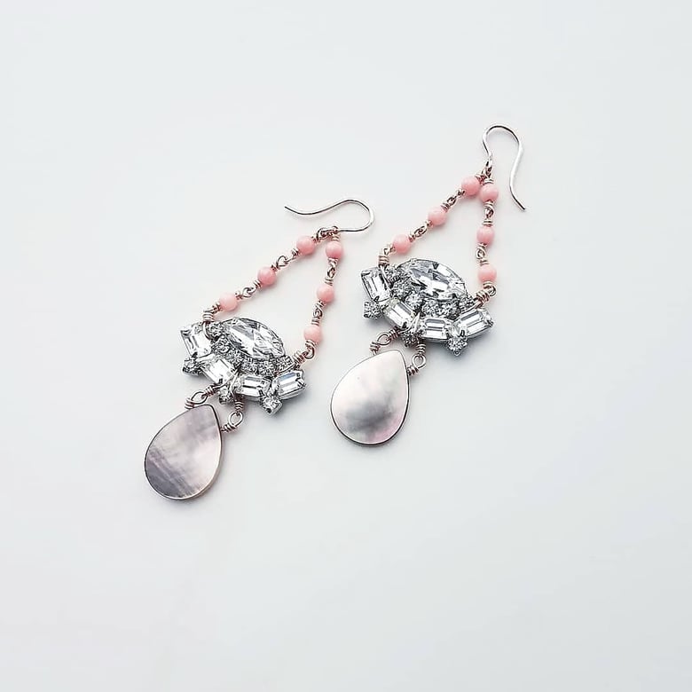 Coral & Mother of Pearl Vintage Rhinestone Earrings$385.00 / Sold Out -